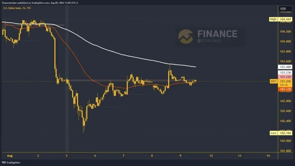 On Thursday, the dollar index rose to 103.54, a new weekly high. The index’s value just touched the EMA 200 moving average, after which a pullback was initiated. During this morning’s Asian trading session, the index retreated to support at the 103.10 level. The EMA 50 moving average provides additional support in that zone.