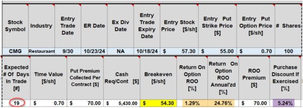 • 9/30/2024: CMG trading at $57.30