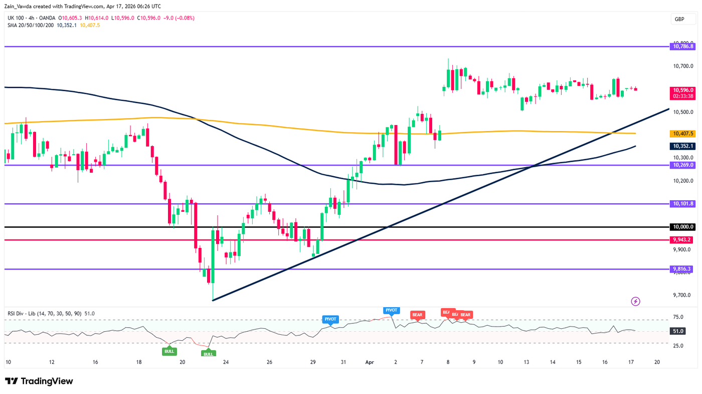 FTSE 100 Four-Hour Chart, April 17, 2026