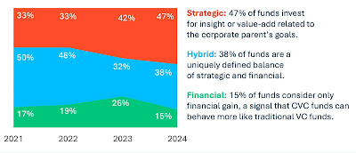 A survey of 257 CVC funds in 2024 yielded the following breakdown of where the payoffs are expected: