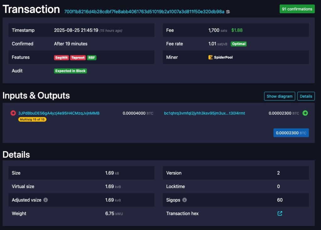 Source: https://mempool.space/tx/700f1b8216d4b28cdbf7fe8abb4061763d51019b2a1007a3d811f50e320db98a