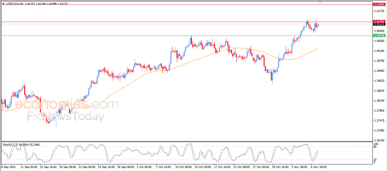 The (USDCAD) price rose in its last trading on the intraday levels, preparing to reach the current resistance at 1.4130, which represents our expected target in our previous analysis, supported by the emergence of the positive signals on the relative strength indicators, affected by the dynamic support that is represented by its trading above EMA50, and under full dominance for the main bullish trend on the short-term basis.
