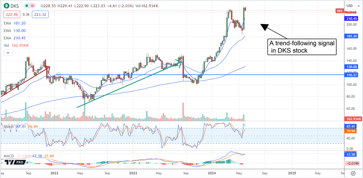 Dick’s Sporting Goods NYSE: DKS stock price resumed rally mode last year as analysts began to lift sentiment. The rally was reinvigorated following the Q1 results, which sparked another series of positive revisions. Details from the report include top and bottom strength, accelerating comp store sales, market share gains, wider margins, and improved guidance. The executive raised the guidance because of the results above the high-end of the prior range and the analysts’ consensus forecasts.