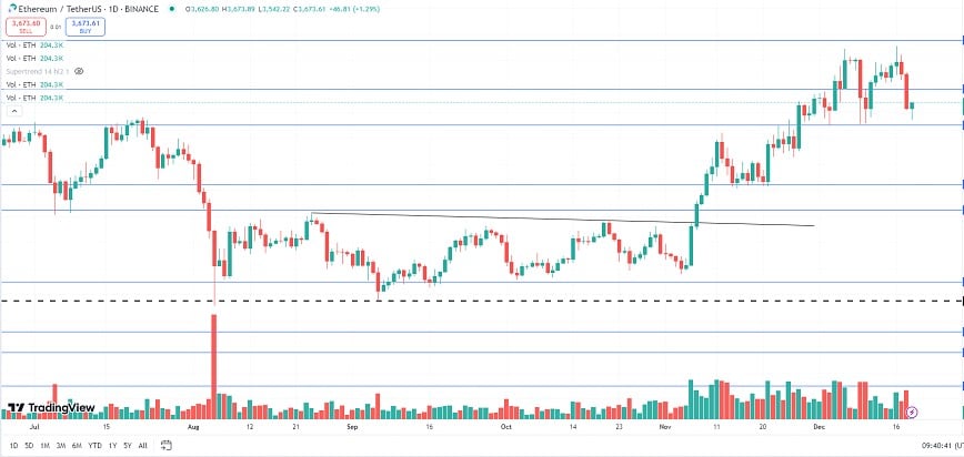ETH has a strong support at $3,500. If it holds and sustains above this level then we can expect the bulls to resume the up move.