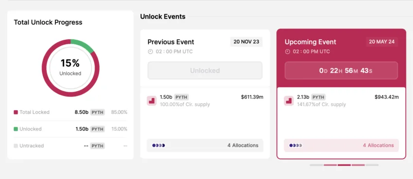 “Pyth unlock worth $910M is on 20th May. 141.67% of current supply is being unlocked. AEVO dumped 25% after the unlock. Most of PYTH holders have staked so they can’t sell their bags. Regardless i am looking for shorting setups,” one crypto trader noted.