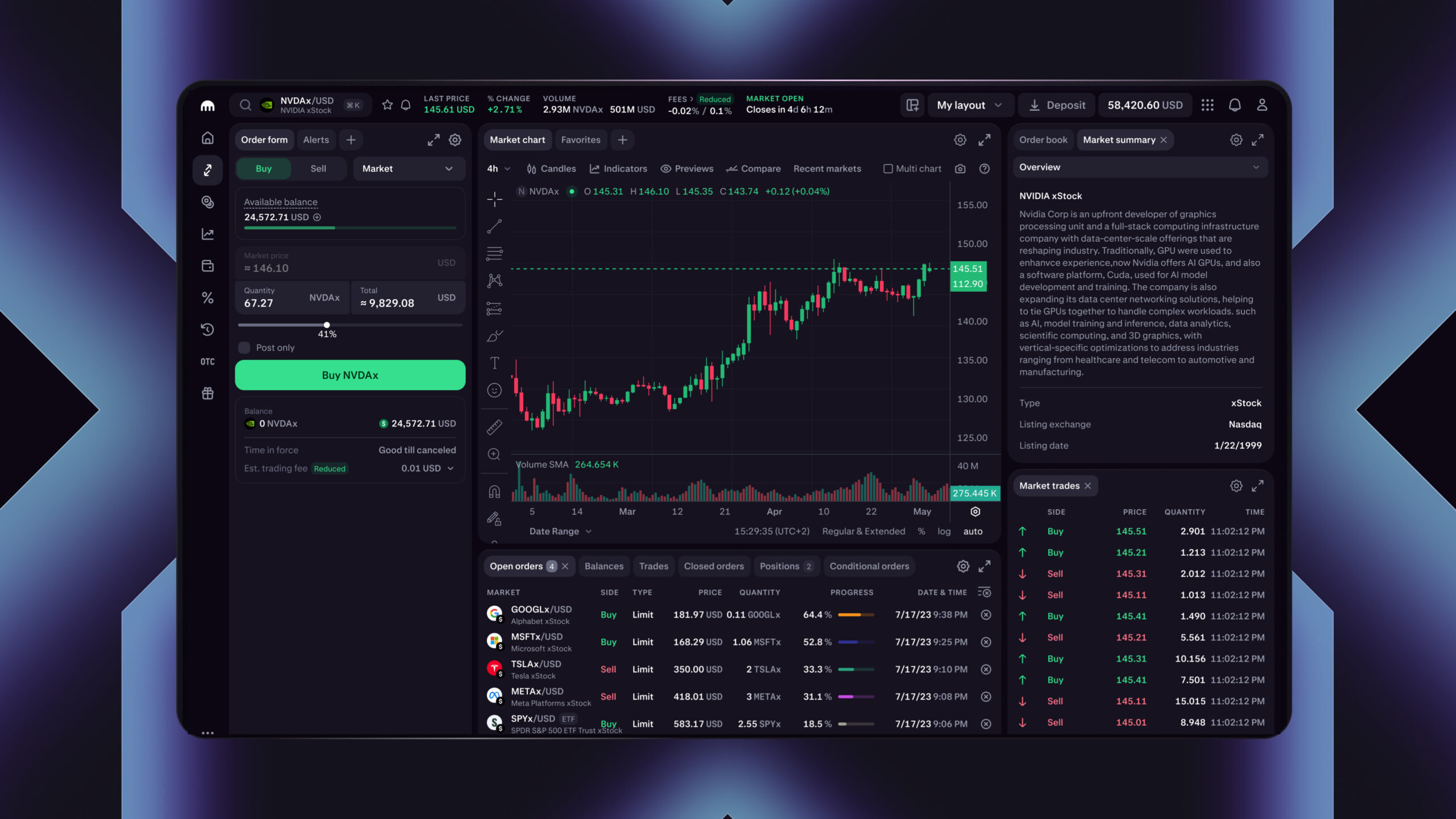 xStocks are tokenized representations of real-world equities, backed 1:1 by the underlying stock or ETF. Meaning you can trade them 24/5 on Kraken Pro, or withdraw them anytime to your wallet, and use them across DeFi protocols — all while benefiting from tight spreads.