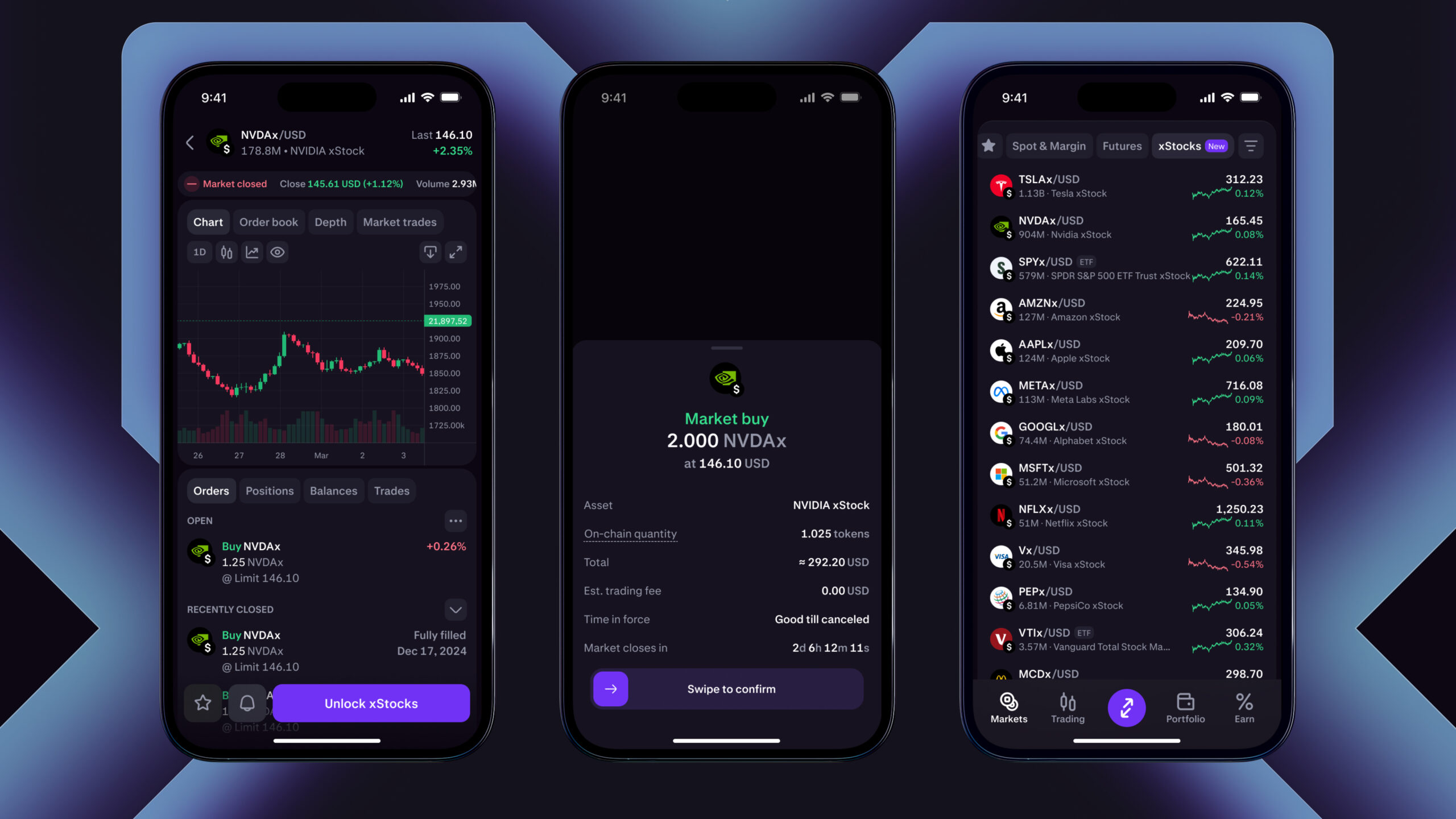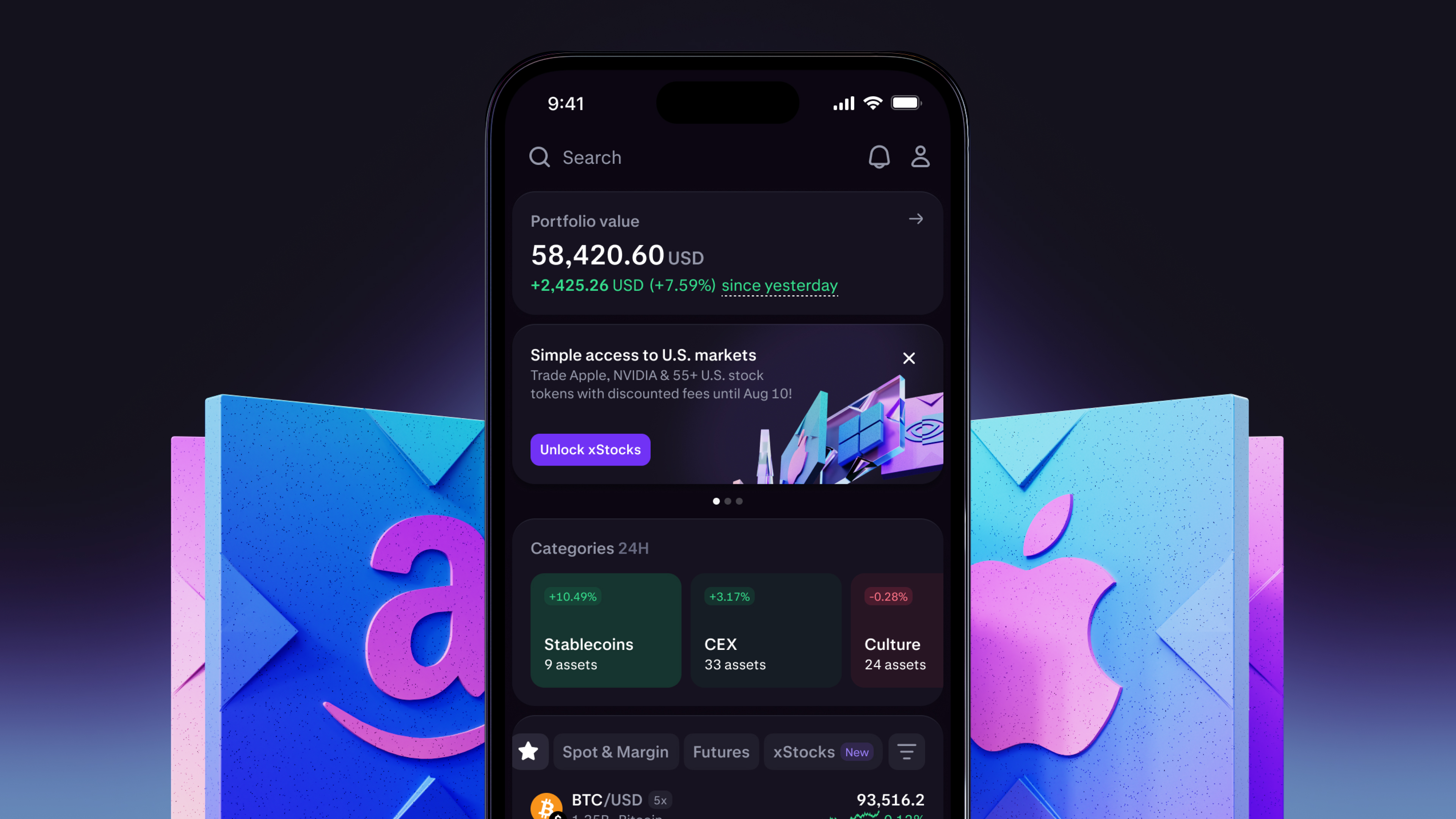 - Trade xStocks like crypto: Buy and sell tokenized U.S. equities alongside digital assets, derivatives, and more.