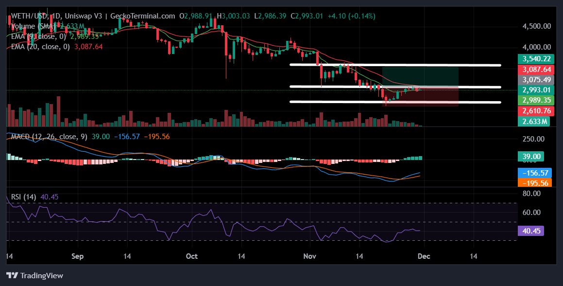 The bullish thesis could be invalidated if ETH is rejected by the $3,070 mark. This might result in a correction to $2,705.