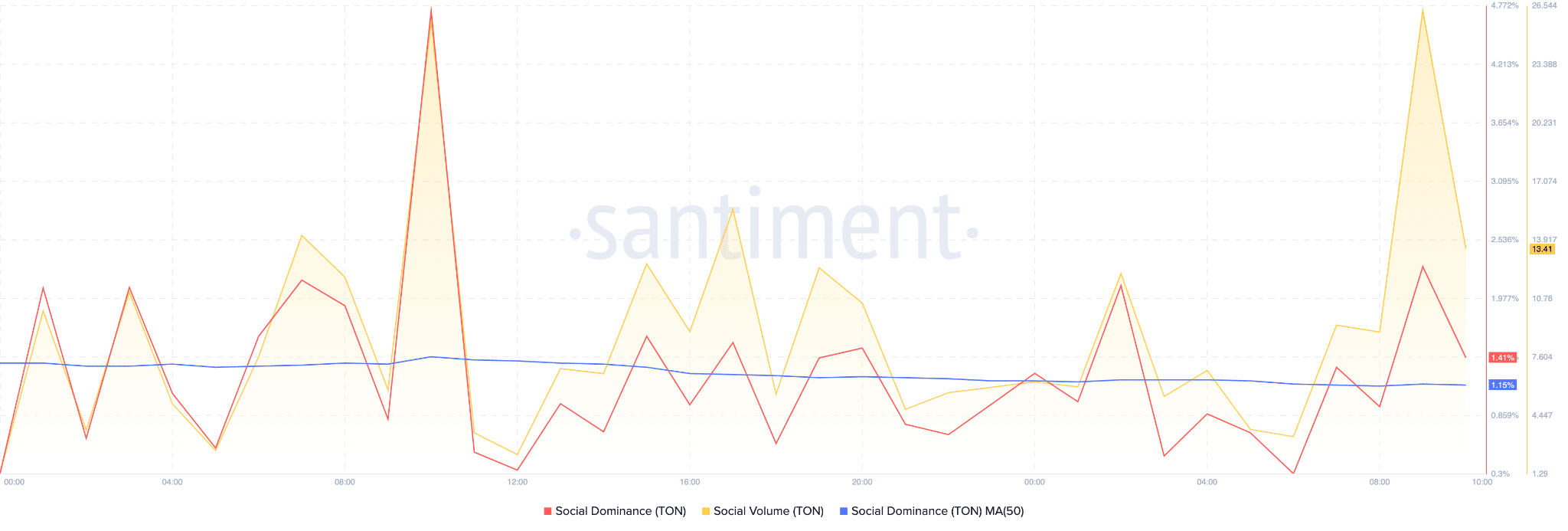 TON’s social volume and social dominance have both increased dramatically over the past five days. These spikes in social metrics often precede or coincide with a rally.
