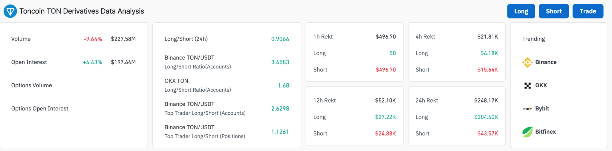 However, TON’s derivatives data shows a decrease in trading volume, which might indicate a cooling off after a period of heightened activity, likely following the recent price surge.’
