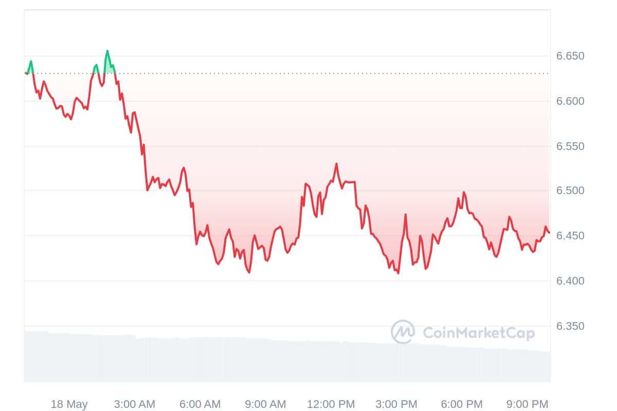 Toncoin is known for outpacing top coins this year due to partnerships and on-chain developments. However, recent corrections have raised bearish concerns. Firstly, the asset has recorded plunging daily volumes. At press time, TON trades at $6.462 with daily trading volumes at $280 million, a 34.7% decline.
