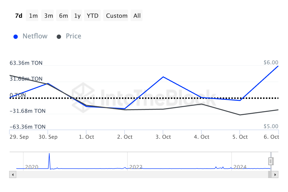 Over the past week, Toncoin (TON) whales have capitalized on recent dips to buy more tokens. This has led to a resurgence in the demand for the altcoin, which has driven up its value since last weekend.