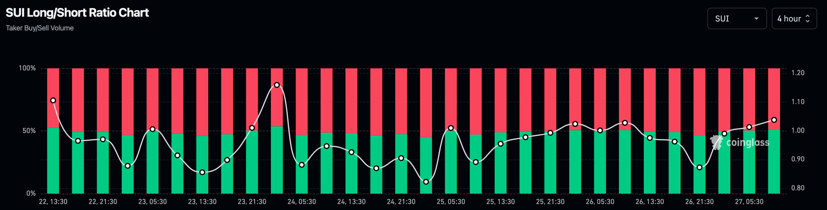 Apart from Cardano price, SUI is among the handful of cryptos that managed a double-digit price uptick. To be precise, the SUI price today increased by more than 10%, making it trade at $2.95 with a market capitalization of over $9.1 billion. In fact, Coinglass’ data revealed that SUI’s long/short ratio increased in the 4-hour timeframe. This clearly suggested that there are more long positions in the market than short positions, which indicated a continued price rise in the coming days. If that happens, then SUI might target $3.5 next.