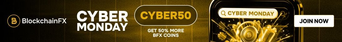 1. BlockchainFX ($BFX): Cyber Monday Deal Unlocks 50% Extra Tokens for Trading Super App