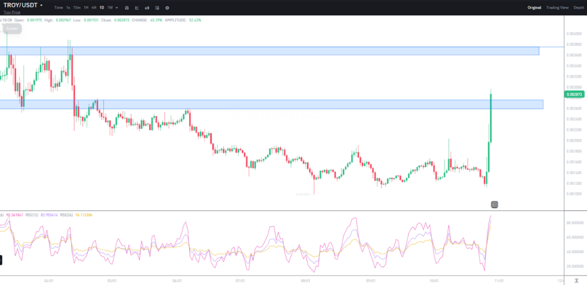 TROY Token (TROY) saw a 241.81% increase in trading volume within 24 hours, while its market capitalisation rose by 83.9% to reach $24.13 million, making it one of the top gainers as of October 28, 2024. The token is associated with Tory Protocol, a global prime broker providing crypto trading and asset management services. The platform is known to provide users with access to aggregated liquidity from multiple crypto exchanges.