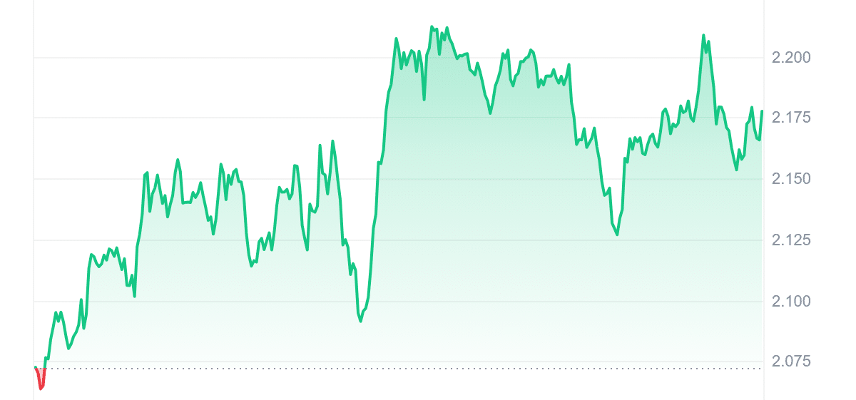 Stacks is performing well price-wise. Its value is $2.19, up 5.11% in 24 hours and 313% over the past year. It outpaced 75% of the top 100 crypto assets, trading 124.15% above its 200-day Simple Moving Average (SMA) of $0.97. The 14-day Relative Strength Index (RSI) is 37.18, indicating a neutral market. Stacks had 13 positive days in the last 30, with a 7% volatility. Its market cap is $3.19 billion, with a 24-hour volume of $256.01 million, resulting in a high liquidity ratio of 0.0803.