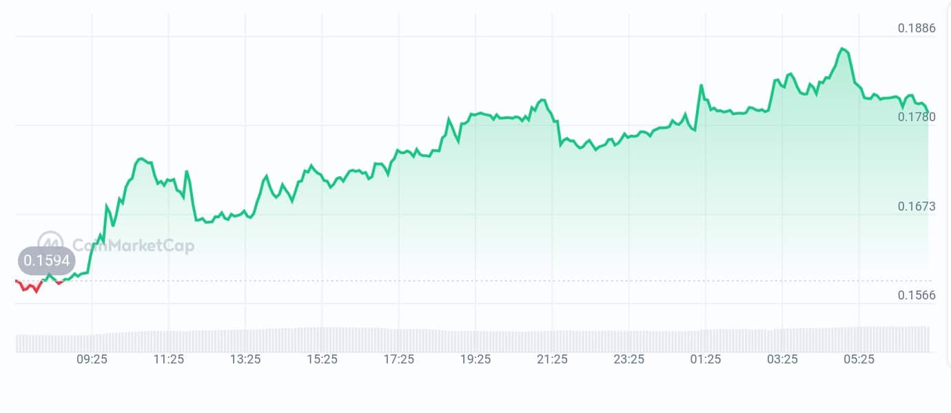Clearpool (CPOOL) is priced at $0.178411, up 12.48% in the past 24 hours and 20.13% over the last month, with a 24-hour trading range of $0.159021 to $0.187014. It shows a bullish outlook, trading above its 200-day simple moving average. While it’s down 18.94% against Ethereum, it’s up 1.66% against Bitcoin over the same period.