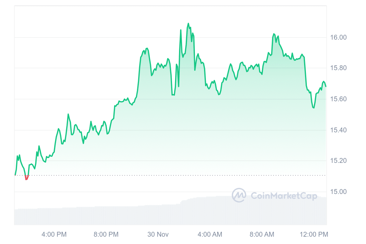 Mina has joined forces with SingularityNET to advance decentralized artificial general intelligence (AGI), focusing on strengthening data security and ensuring user privacy. Meanwhile, Flow has shown encouraging market trends, reflecting growing interest in the platform. As of now, Neo is priced at $15.65, marking a 3.62% rise in the last 24 hours.