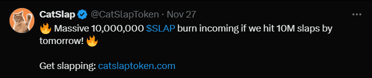 Catslap’s tokenomics, dubbed “Slaponomics,” dedicates 10% of its token allocation to community rewards. This structure encourages user engagement and participation in the project’s ecosystem. By rewarding its community, the project aims to build a loyal and active base of users interacting with the game and token.