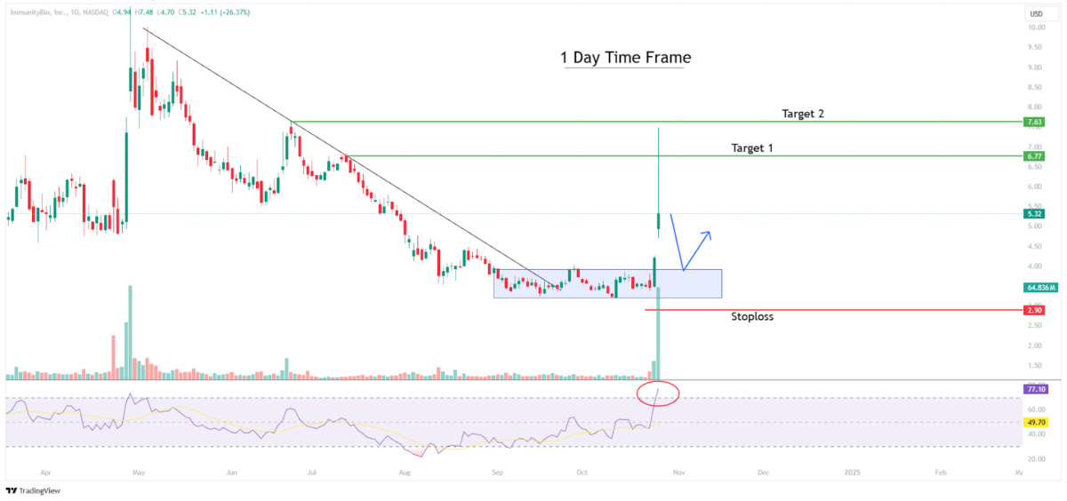 ImmunityBio Inc. (NASDAQ: IBRX) stock turned out to be the top gainer after delivering nearly +77% returns in a single day and, by the end of the day, closing at +26.37%.