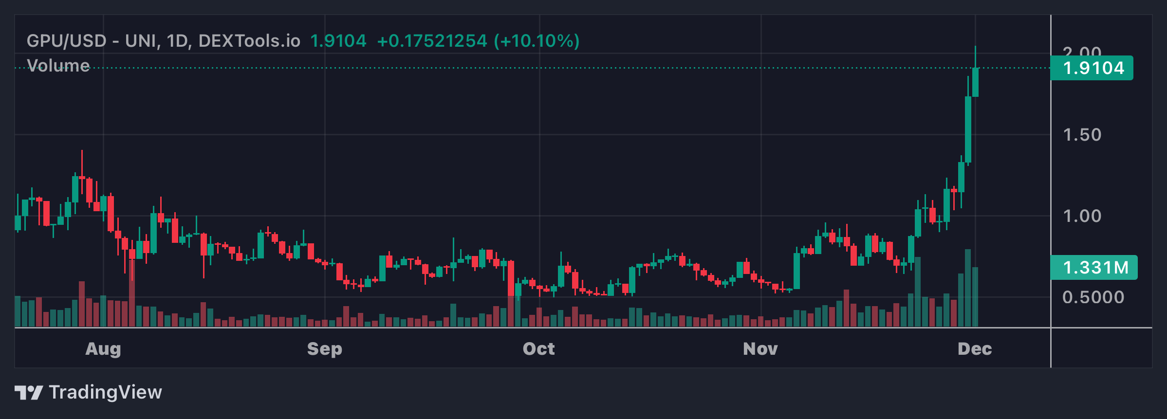 GPU is currently priced at $1.953, demonstrating bullish sentiment. This substantial price uptick highlights growing confidence in the blockchain-AI integration space. The coin is not just a speculative asset; it powers practical applications, including DeFi, gaming, and healthcare. Its utility and strong market performance make it a reliable investment.