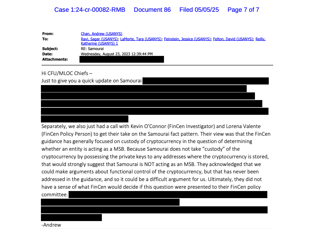 The 2023 communications between US prosecutors and FinCEN. Source: Court Listener