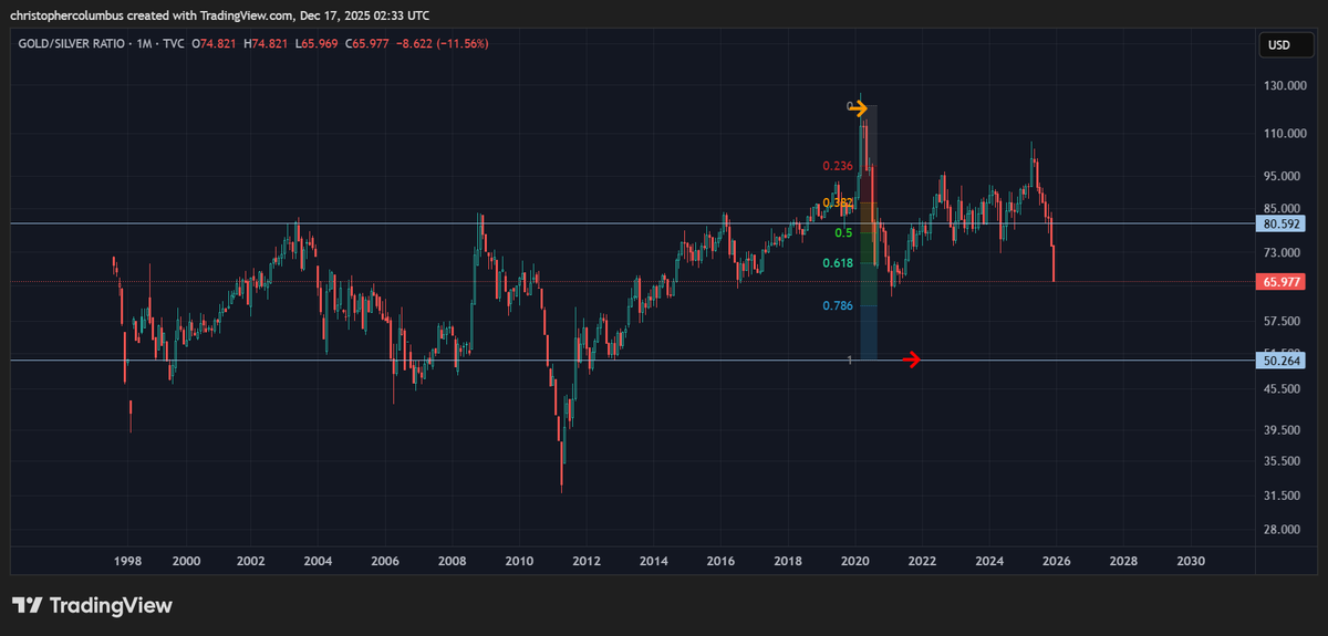 “Gold/ silver ratio chart from 2020 on target. Near 3/4s of the way there…”