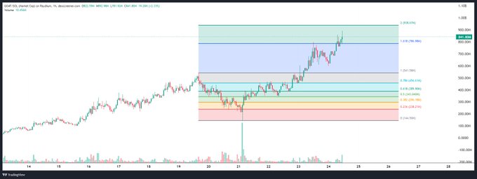 Turning to GOAT, the pseudonymous analyst predicts that the memecoin that has exploded by around 15x in a few weeks will reach a fully diluted value of $1 billion, a gain of around 50% from the current $667.8 million.