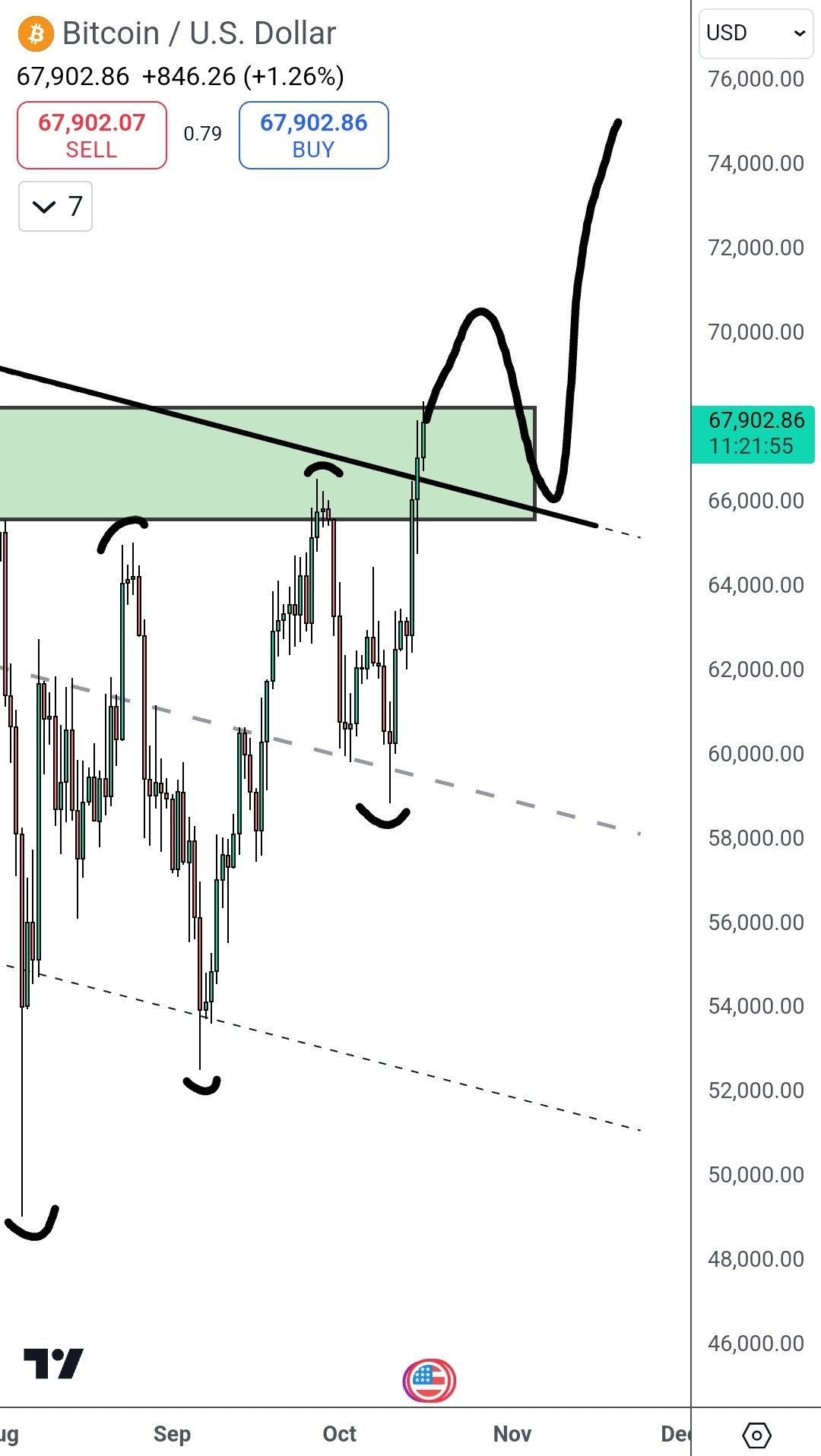 “BTC can go higher and would certainly be looking to buy on a pullback before higher.”