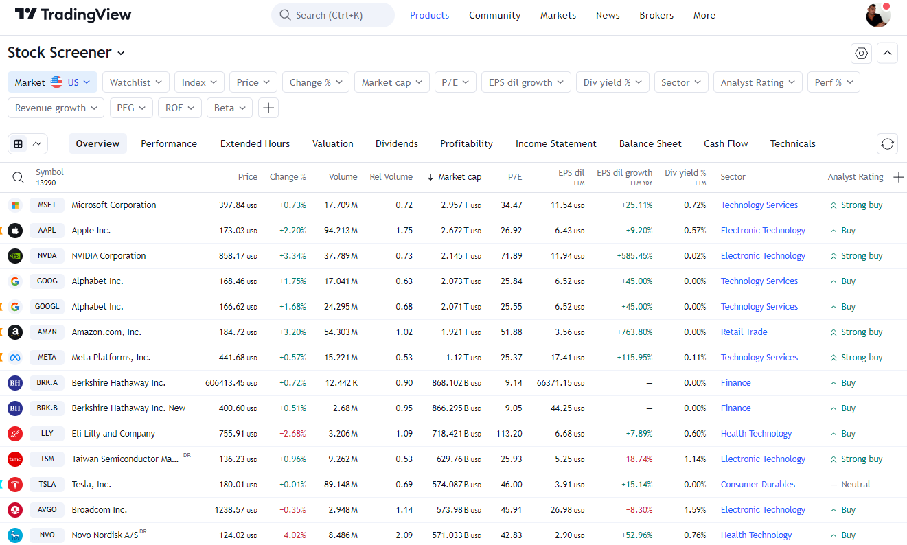 TradingView Stock Screener in ActionTradingView Stock Screener in Action
