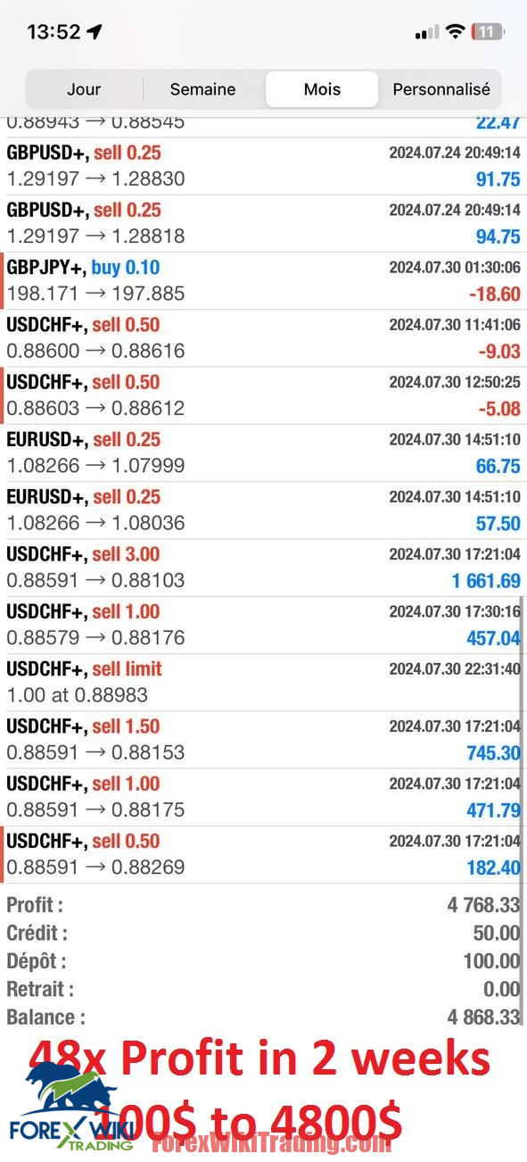 A user reportedly turned $100 into $4,800 within two weeks using the TrendSeal strategy, supported by the scanner tool. This result highlights the potential of combining disciplined trading with effective tools. However, such outcomes depend on risk management and market conditions and should not be considered typical.