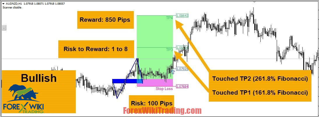 The scanner integrates Fibonacci levels (161.8% and 261.8% by default) to provide clear take-profit (TP) and stop-loss (SL) levels. These levels serve as crucial guidelines for setting precise trading parameters.