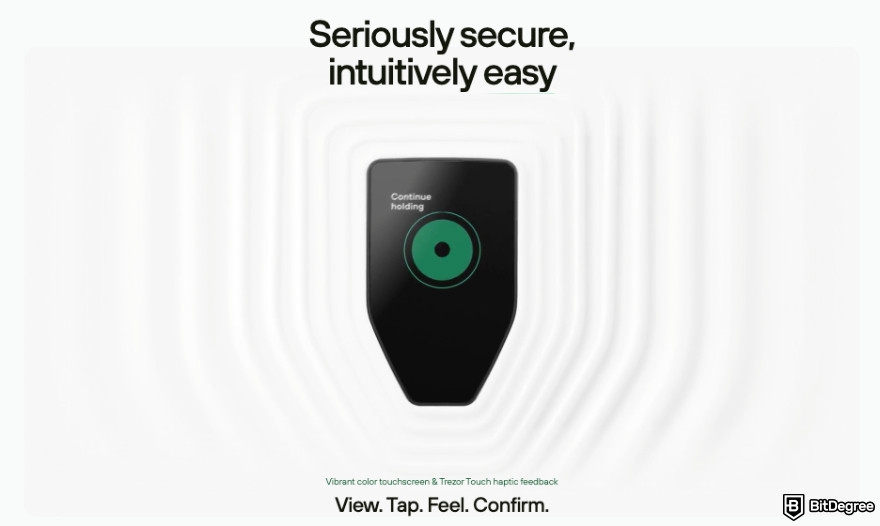 Its 1.54″ color touchscreen, enhanced with tactile feedback from the Trezor Touch haptic engine, provides an intuitive navigation experience. The touchscreen is made using Gorilla® Glass 3, so it’s scratch-resistant, too.