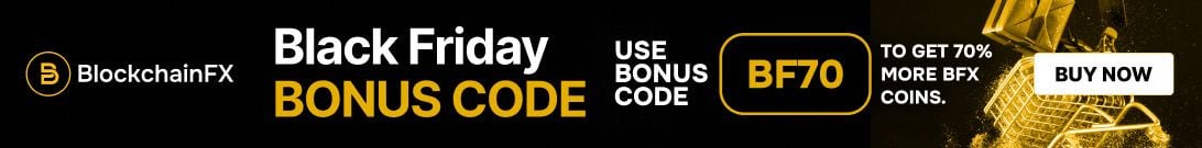 To celebrate the licensing milestone, BlockchainFX launched its largest promotional event yet. The BF70 Black Friday code gives every buyer 70% additional tokens, dramatically increasing their allocation while the price remains low.
