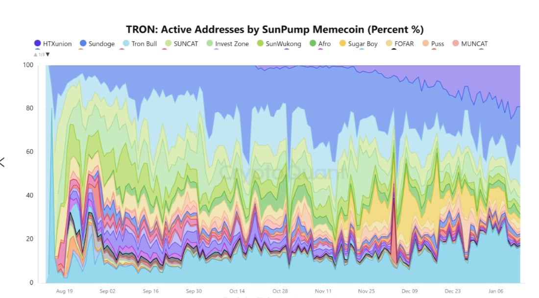 According to CryptoQuant analysis, SunPump in the Tron Network has become the first ever platform within the blockchain solely dedicated to the fair launch and trading of memecoins.