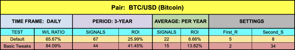 XAU and BTC came up roses on both their default settings and even better when tweaked a bit. EUR and SPX500 were a bit soft but as you know, different markets have their own moves and grooves so what may work better for one, doesn’t necessarily work for another…unless it does!