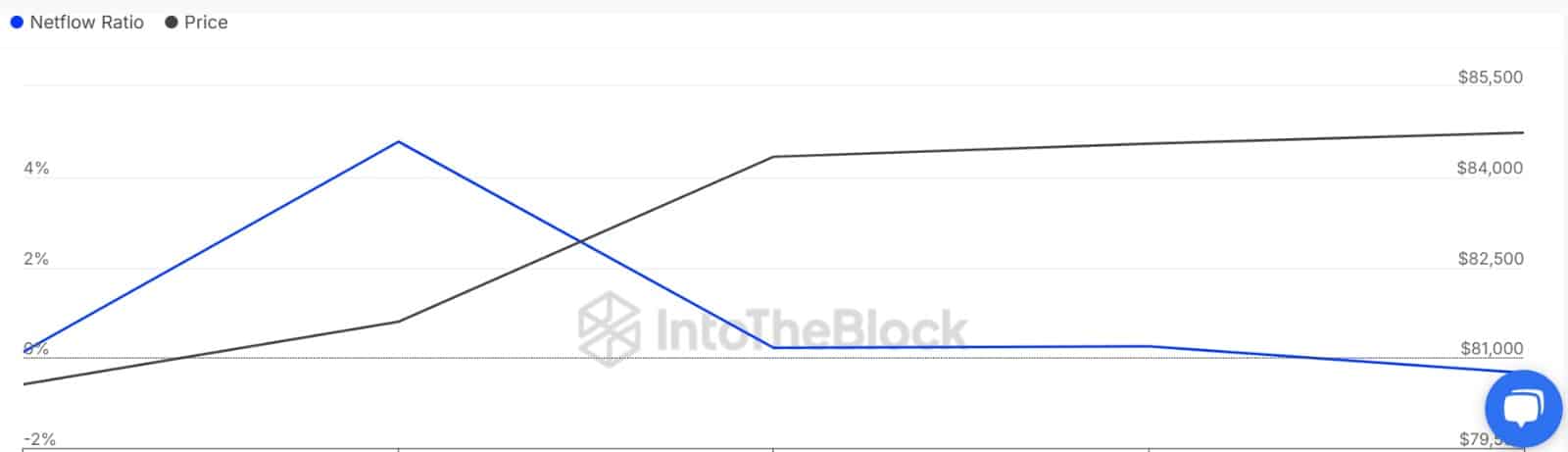 Looking at the large holders’ netflow to exchange netflow ratio, we can see that whales have not been selling. In fact, the whale flow ratio to exchanges dropped to a weekly low of -0.34% – A sign of bullish sentiments among whales.