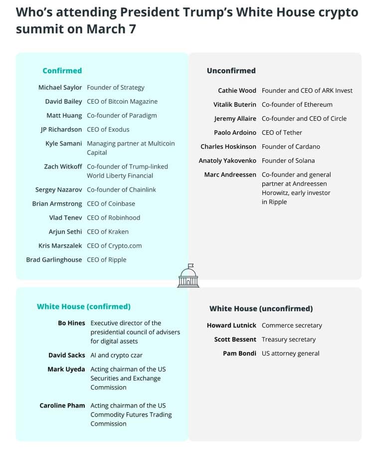 The upcoming White House Crypto Summit marks a historic pivot in the U.S. government’s stance on digital assets. Set for March 7, the event will bring together some of the most influential figures in crypto, including MicroStrategy’s Michael Saylor, Chainlink’s Sergey Nazarov, and Coinbase CEO Brian Armstrong.