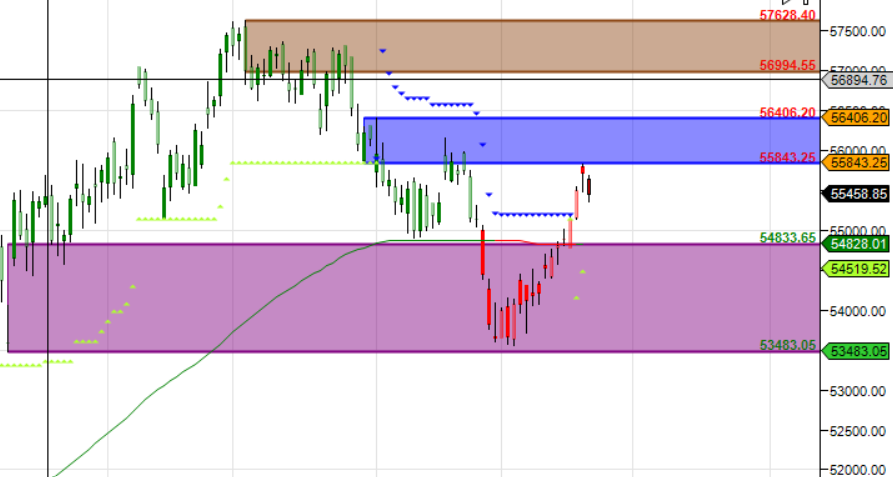 55339 is Monthly Resistance zone 56130 is Monthly Support zone.