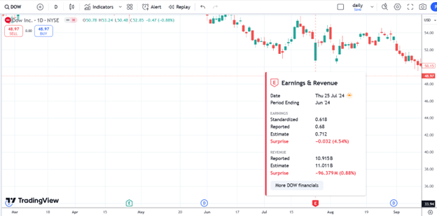 The company Dow Inc reports earning the morning of July 25th, 2024.