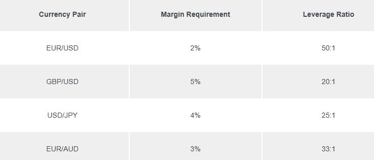 For instance, if the leverage ratio is 100:1, the margin requirement would be: