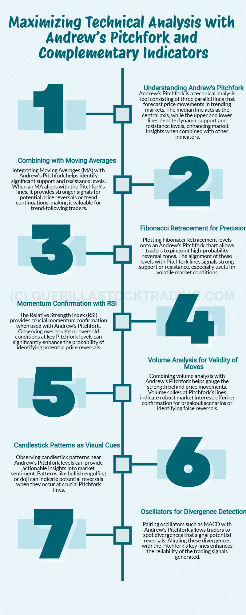 Andrew’s PitchforkAndrew’s Pitchfork is a popular technical analysis tool used in stock trading to identify potential levels of support and resistance and forecast price movements. It is particularl… is a powerful tool, and its integration with other technical indicators opens new avenues for comprehensive market analysis. Whether it’s Moving Averages for trend confirmation, Fibonacci RetracementFibonacci retracement is a fundamental tool in the arsenal of technical analysts and traders. Rooted in the mathematical principles of the Fibonacci sequence, this technique is wid… for precise entry points, RSIIn the world of technical analysis, the Relative Strength Index (RSI) stands as a cornerstone tool for traders seeking insights into market momentum. Developed by J. Welles Wilder … for momentum assessment, or volume and candlestick patterns for added context, each combination enhances the Pitchfork’s utility.