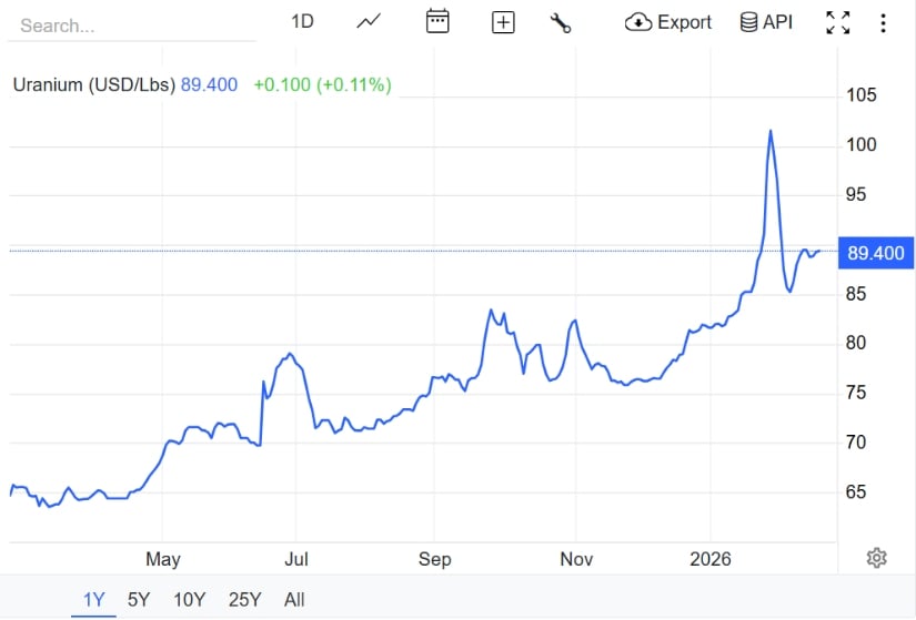 Uranium Price Prediction: $89 Holds After Spiking Over $100