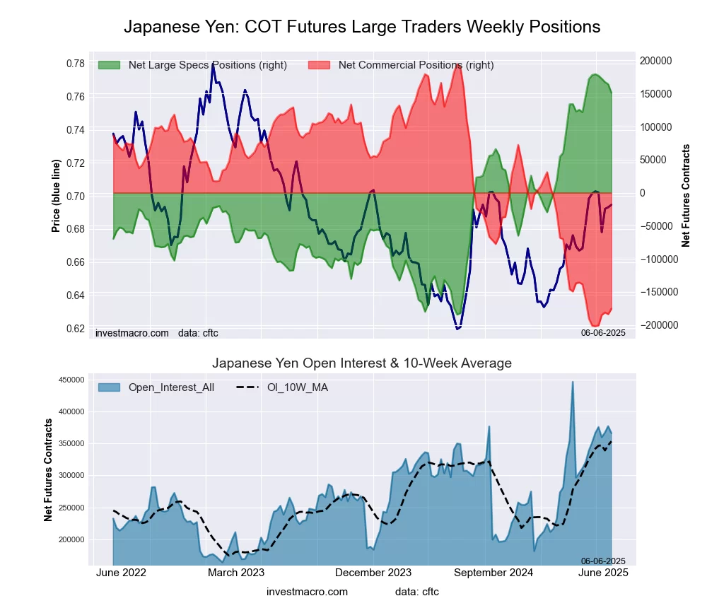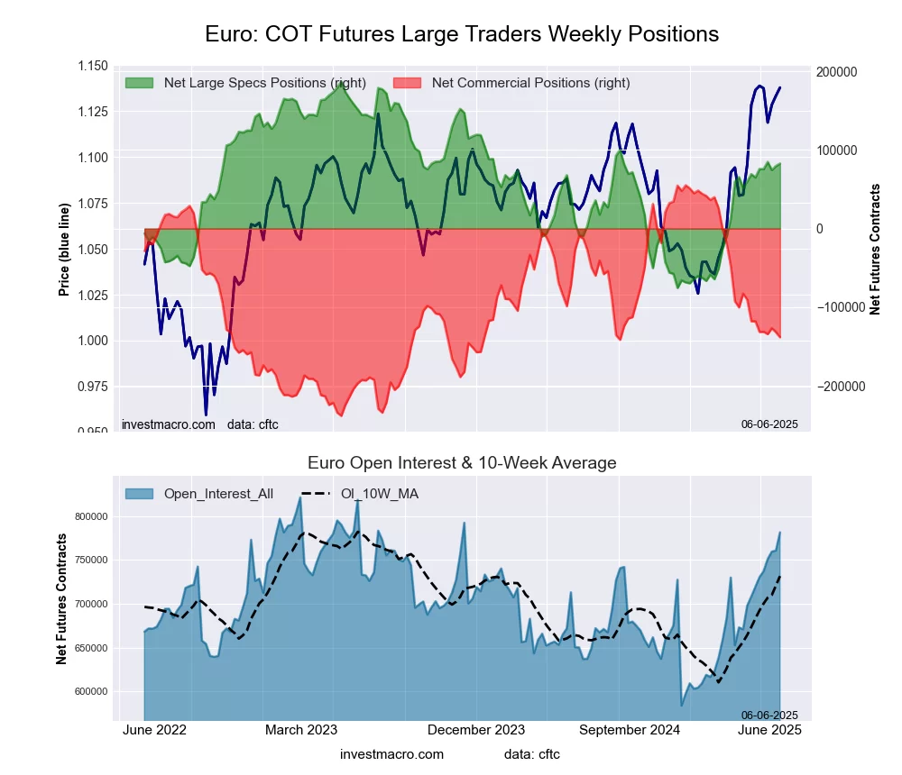 The latest COT data is updated through Tuesday June 3rd and shows a quick view of how large market participants (for-profit speculators and commercial traders) were positioned in the futures markets. All currency positions are in direct relation to the US dollar where, for example, a bet for the euro is a bet that the euro will rise versus the dollar while a bet against the euro will be a bet that the euro will decline versus the dollar.