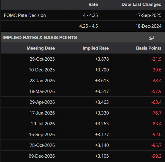 According to LSEG data, markets are pricing in around an 87% probability of a rate cut in October and 62% of a rate cut in December.
