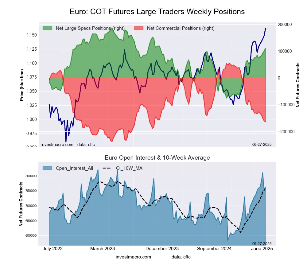 The latest COT data is updated through Tuesday June 24th and shows a quick view of how large market participants (for-profit speculators and commercial traders) were positioned in the futures markets. All currency positions are in direct relation to the US dollar where, for example, a bet for the euro is a bet that the euro will rise versus the dollar while a bet against the euro will be a bet that the euro will decline versus the dollar.