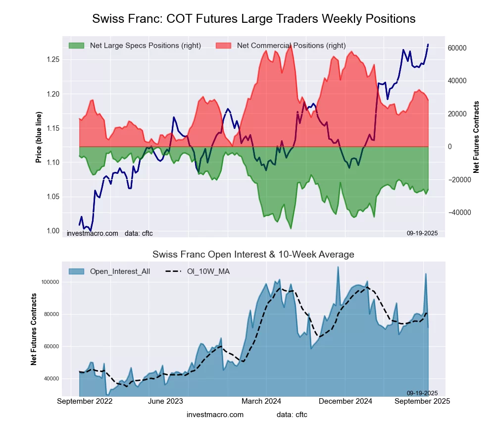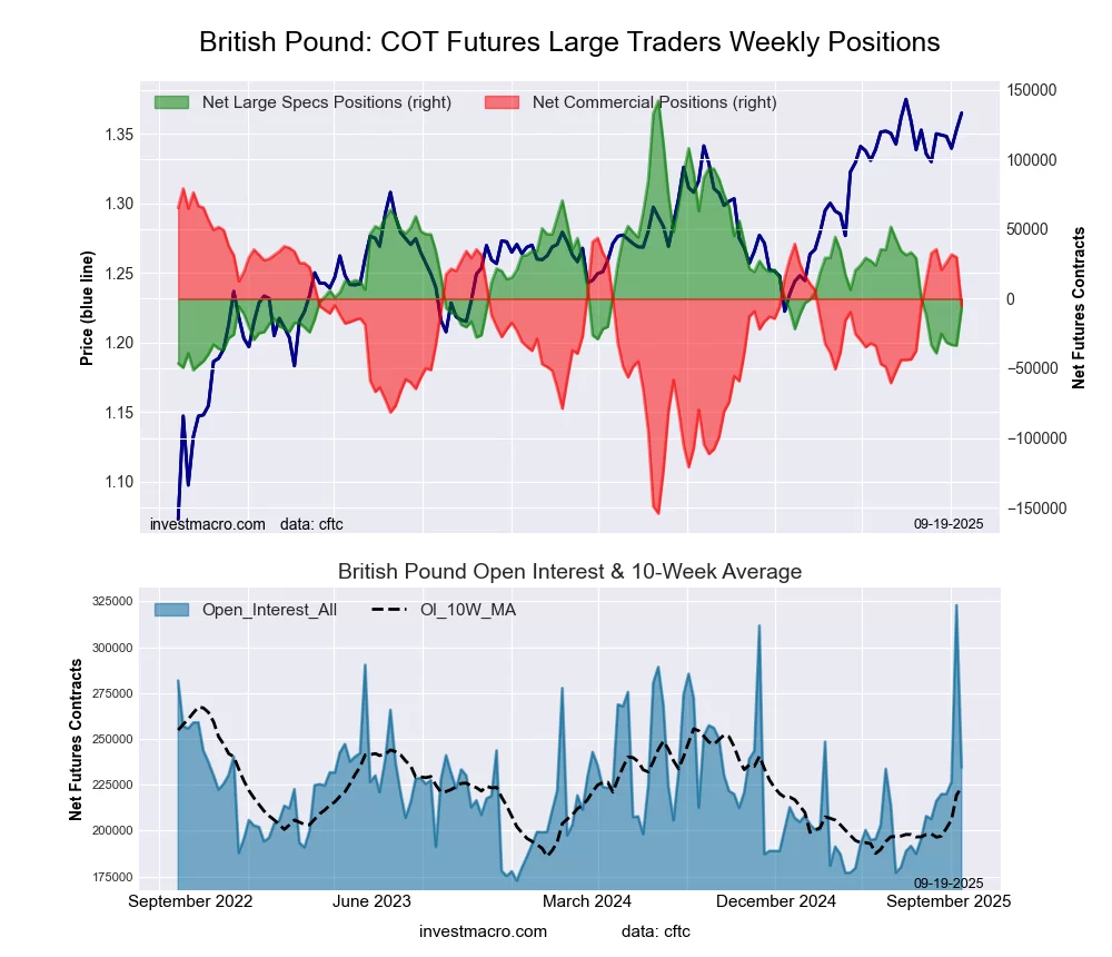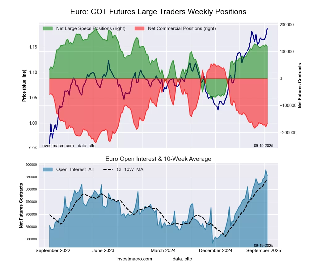 The latest COT data is updated through Tuesday September 16th and shows a quick view of how large market participants (for-profit speculators and commercial traders) were positioned in the futures markets. All currency positions are in direct relation to the US dollar where, for example, a bet for the euro is a bet that the euro will rise versus the dollar while a bet against the euro will be a bet that the euro will decline versus the dollar.