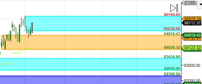 Sensex unable to cross SHARK pattern PRZ zone of 86000 fall towards 85000/84700