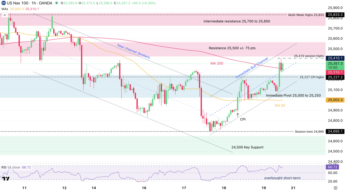 - intermediate resistance 25,700 to 25,850 (recent highs)