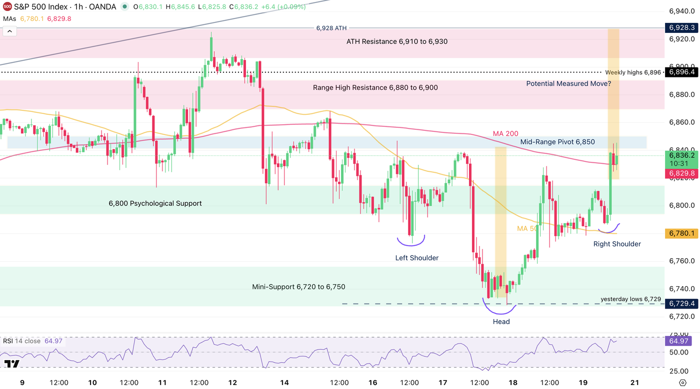 S&P 500 1H Chart – Inverse Head & Shoulders forming?